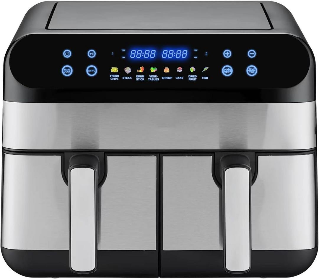 Die wichtigste Eigenschaft einer Doppelgarfächer-Heißluftfritteuse ist die Möglichkeit, beide Kammern völlig unabhängig voneinander zu steuern. Achten Sie darauf, dass Temperatur und Garzeit individuell anpassbar sind, damit sich keine Aromen vermischen.